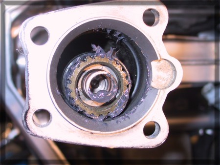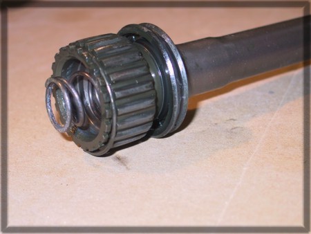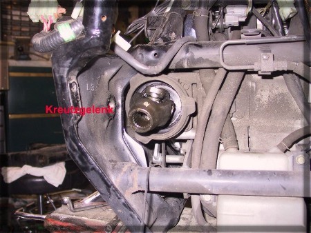 Die Feder welche dort raus schaut verhindert das hin und her wandern der Antriebswelle zwischen dem Kreuzgelenk und dem Kardan