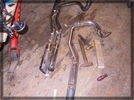 kleine neben arbeiten die Beule aus der Auspuffverkleidung entfernen