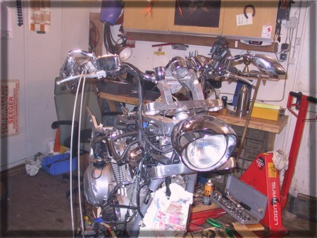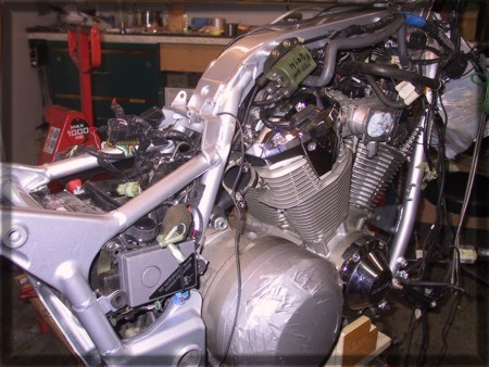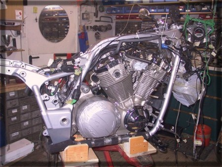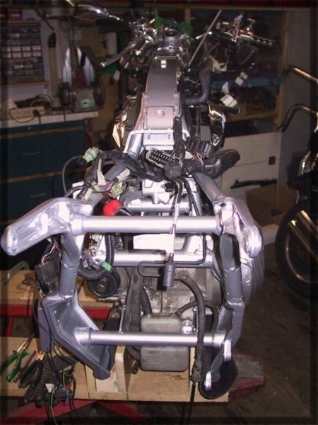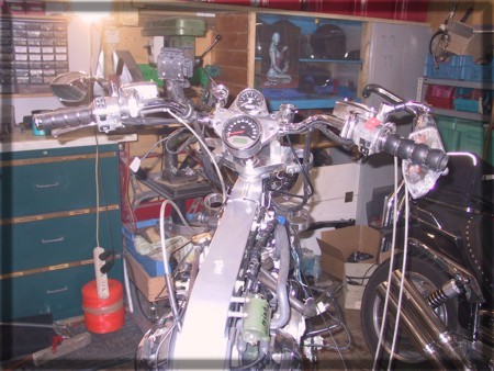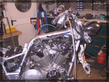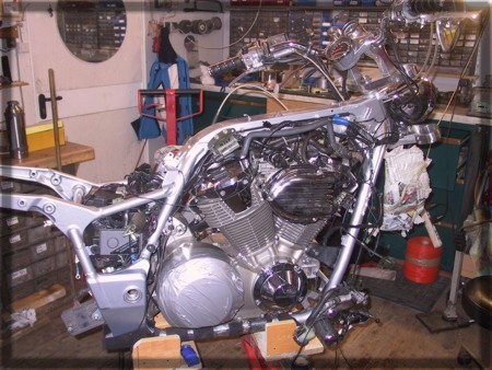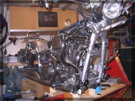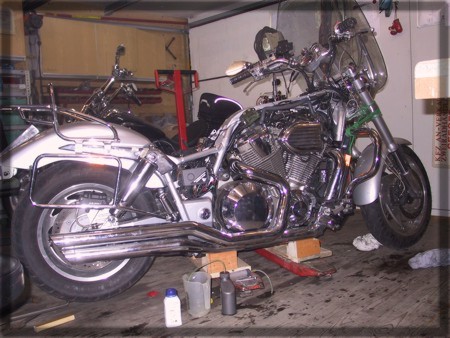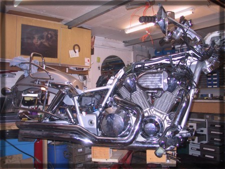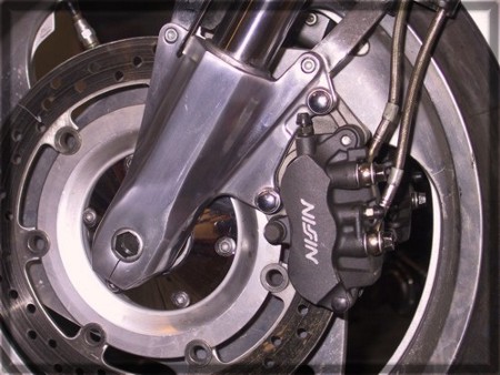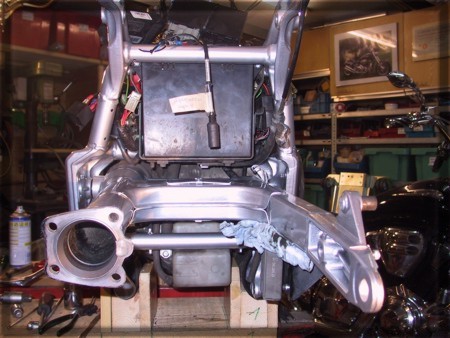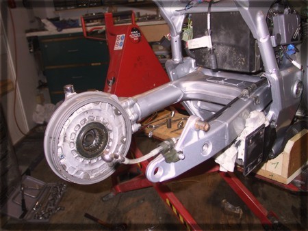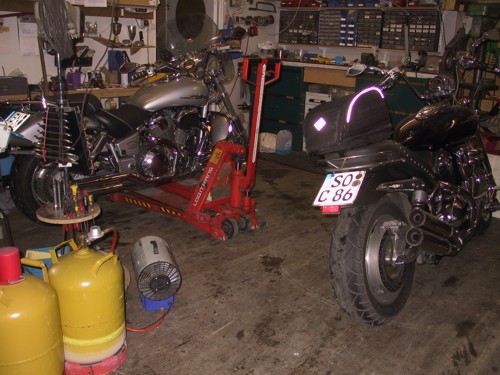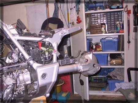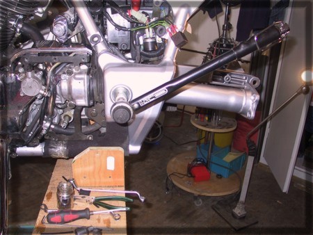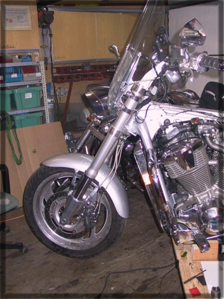 Jetzt kann die X schon alleine Stehen.Hier entlüfte ich gerade die Bremsen