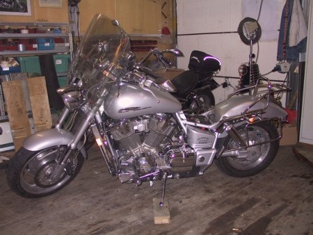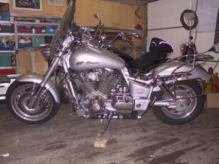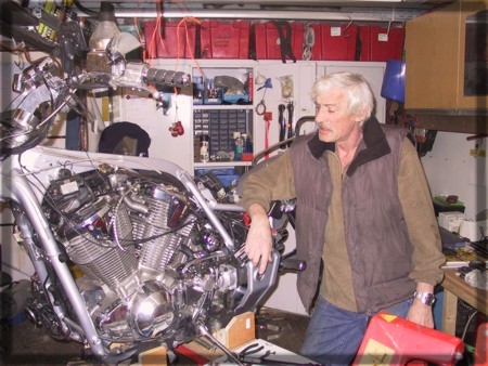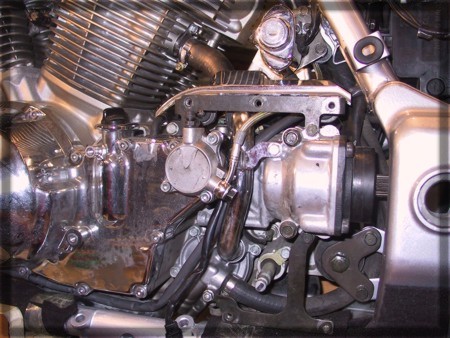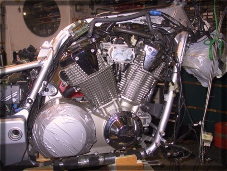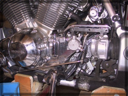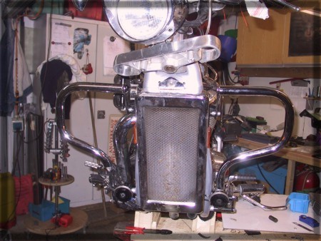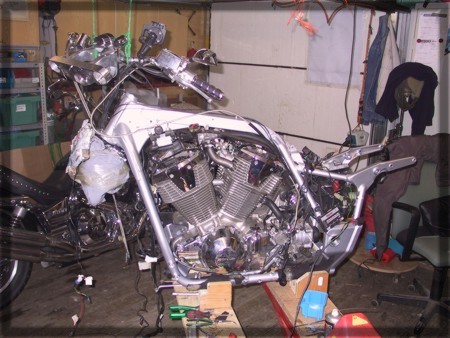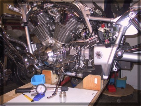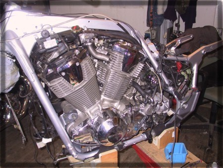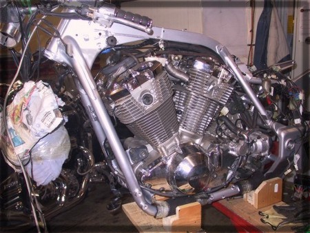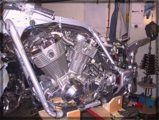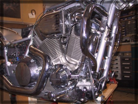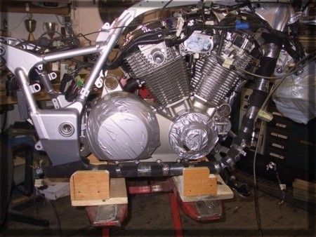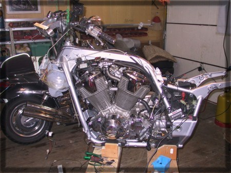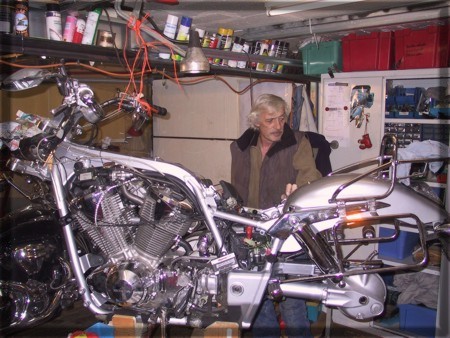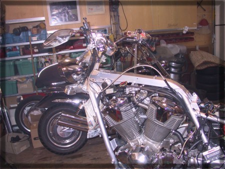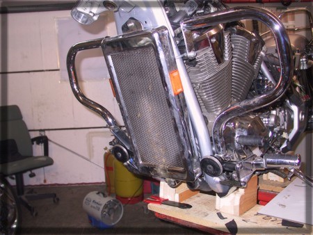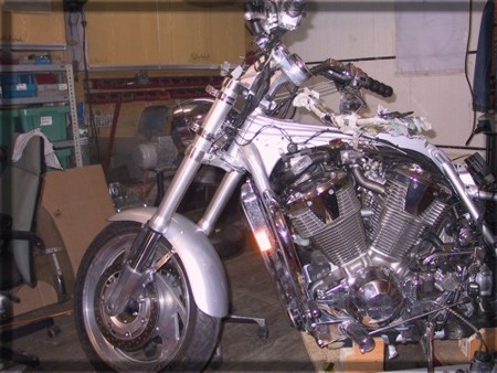 Jetzt kann die X schon alleine Stehen.Hier entlüfte ich gerade die Bremsen