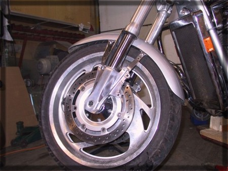 Die Gabel Vorderrad mit Bremsen und die Scheibe angebaut.