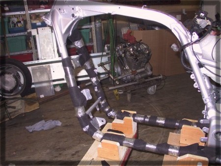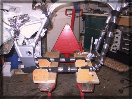 Hier die Montageböcke zur Aufnahme des neuen Rahmens