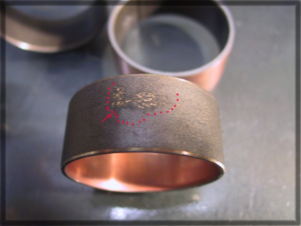 Hier sieht man das die Gleitlagerbeschichtung stellenweise